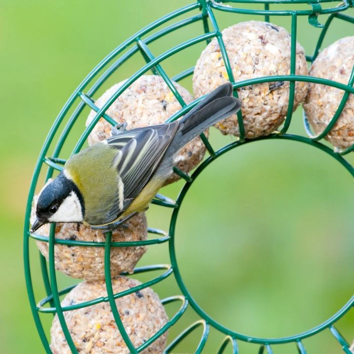 This Fat Ball Feeding Ring will hold up to ten fat balls at one time within the enclosed wire mesh, which allows more birds to feed at one time.